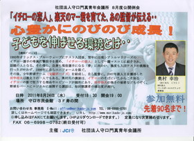 3月21日に守口門真青年会議所の3月度例会にダウンタウン松本のお兄さんで松本隆博氏を迎えて公開例会が行われます。