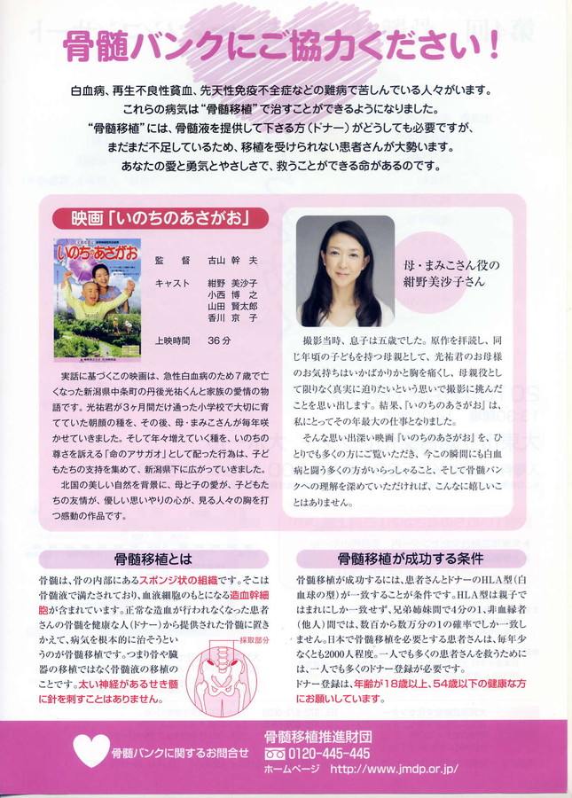 冬場の血液不足を補う為に、今年も献血併行型骨髄ドナー登録会を開催いたします。あなたの優しさを待っています。