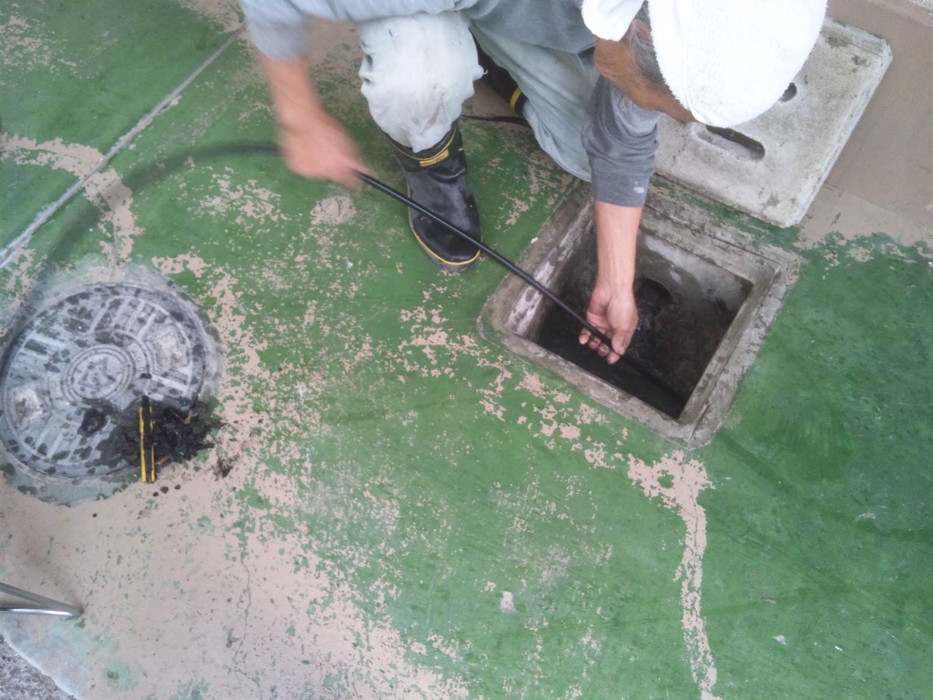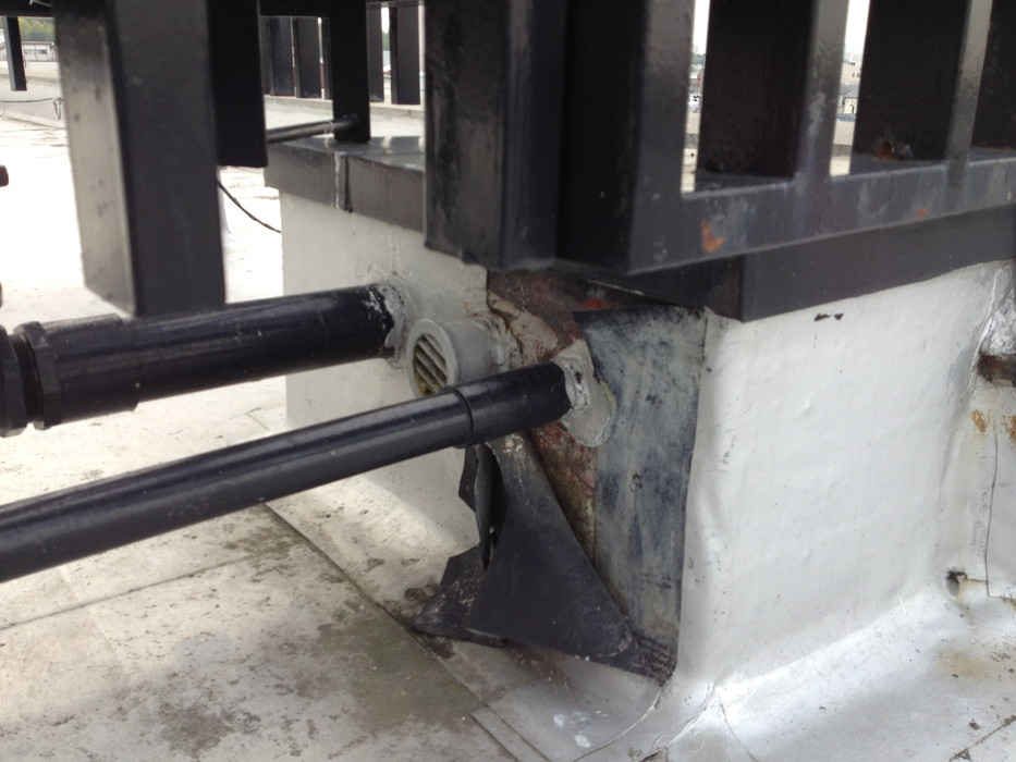 室内の天井より漏水が有るとの事で調査しました所。屋上の防水シートが至る所捲れていて、張り付けて修理完了致しました。
